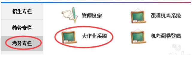 方式一:从学院主页进入 主页(http://dec.jlu.edu.cn)上方导航条选择“网络教育”——“考务专栏”(此时在页面下方)——“大作业系统”登陆。