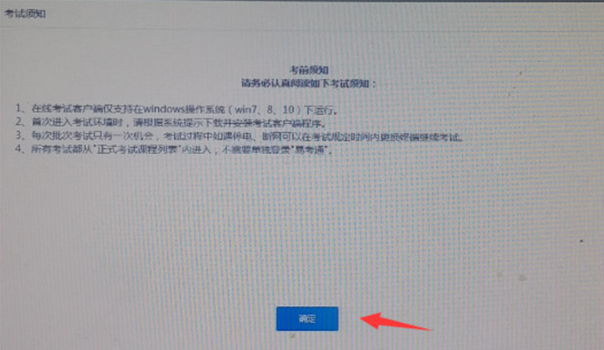 进入OTS客户端,请先行阅读“考前须知”,阅读倒计时终止时点“确定”进入考试页面。