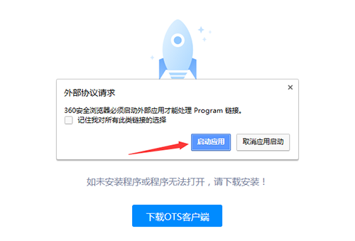 方式二:点开始考试后,网页提示OTS客户端在线考试系统自动下载。如电脑安装360安全卫士,安装时请在360防护提示时,选择“允许程序所有操作”。