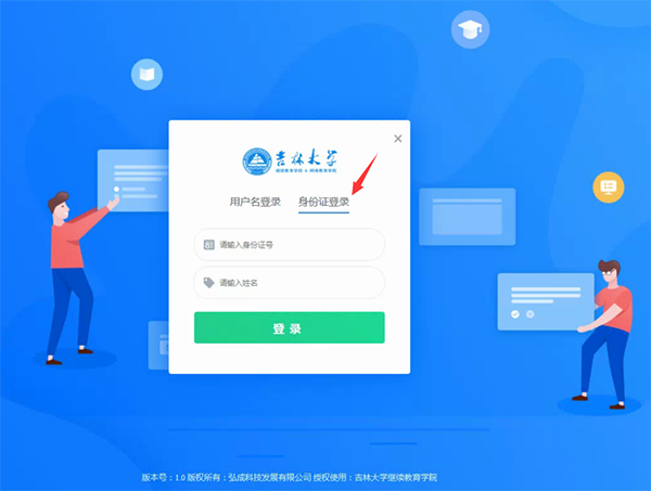 3、OTS客户端登陆,请学生选择身份证登录,填好身份证号和姓名,进入。