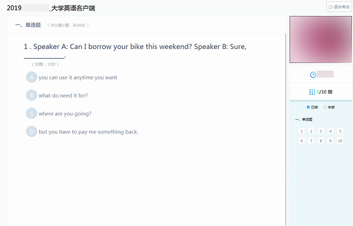 5、进入考试页面。考试计时从人脸识别通过开始,请谨慎退出。