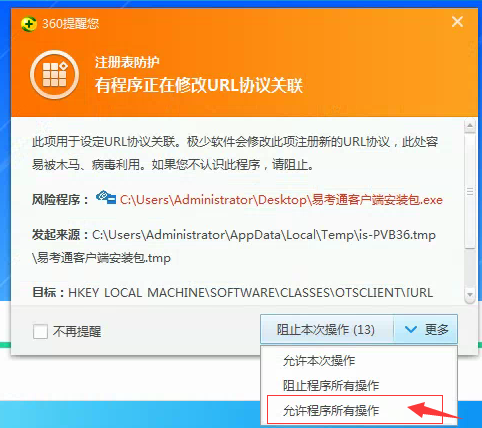 注:安装后点开始考试后如360提示“外部协议请求”请点击“启动应用”。