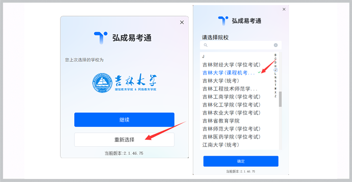 3、在进入考试时,选择学校“吉林大学(课程机考&大作业)”,注意这里选择相对应形式即可。